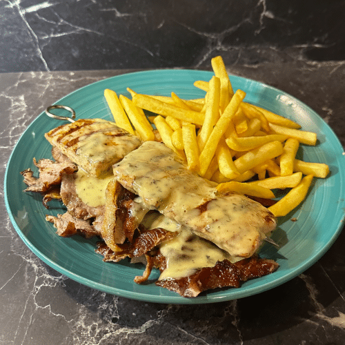 Alle Gerichte werden mit gebratenem Gemüse serviert.